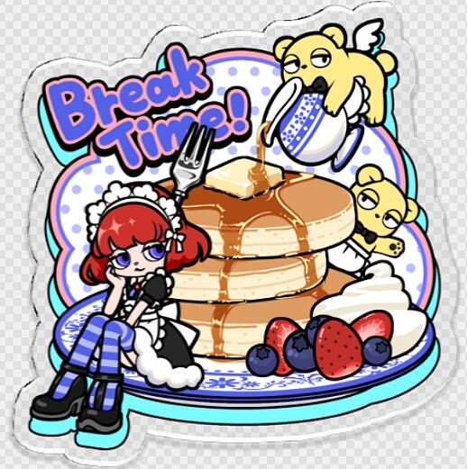 メイドのお姉さんとバイト仲間のくま達をイメージしたイラストをアクリルステッカーにしました。